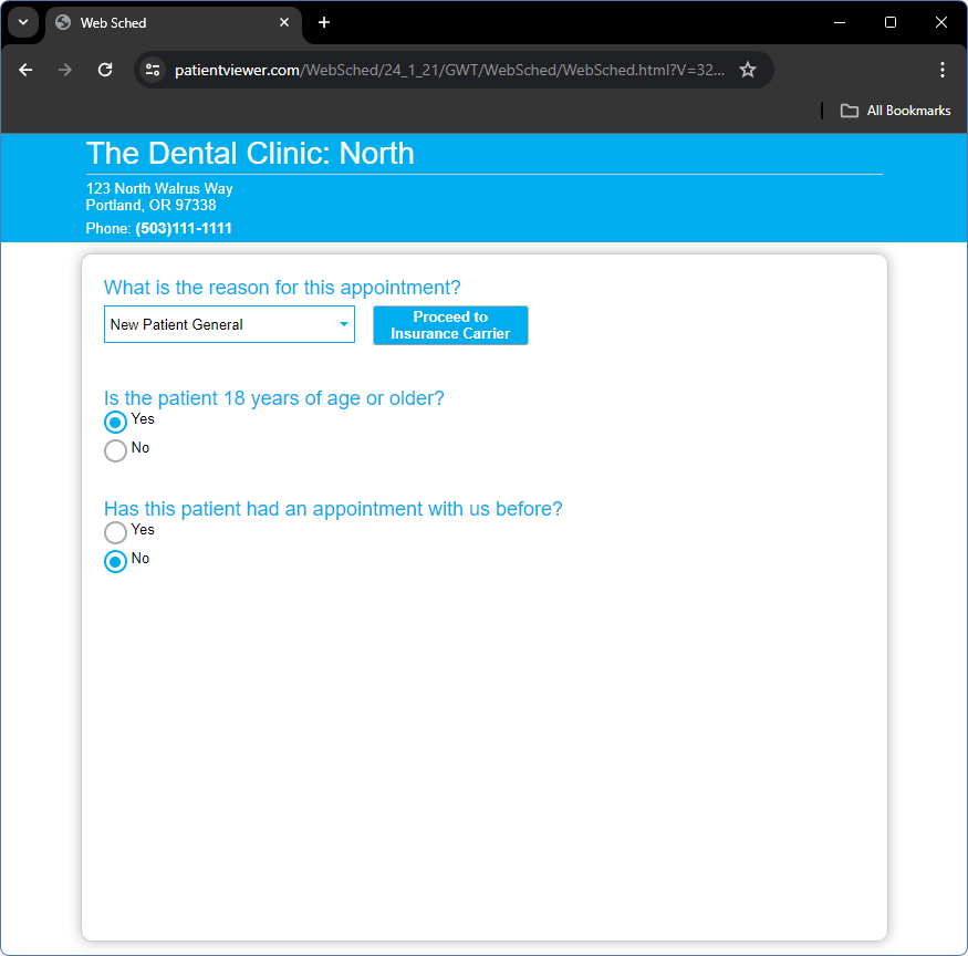 - If a carrier rule is marked as Blocked, the patient cannot continue scheduling their appointment online.