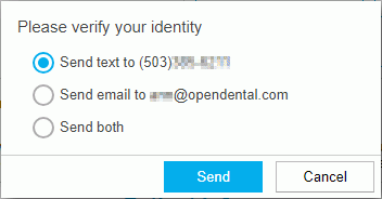 If Email or Text is selected under Web Sched New Patient Authentication in Web Sched Advanced Setup, the patient is prompted to verify their identity.