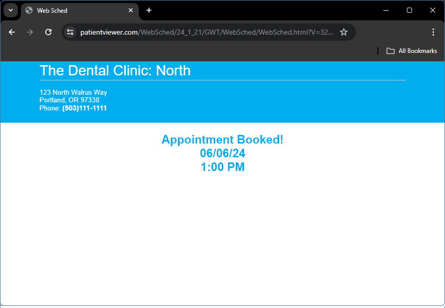 - Once all information has been entered, the patient clicks Schedule Appointment. A confirmation displays.