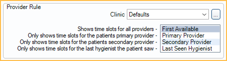 - Clinic: Select Clinic from the dropdown list to choose clinic specific Provider Rule.