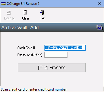 For practices utilizing XCharge, cards can be saved to patient accounts without processing a payment.