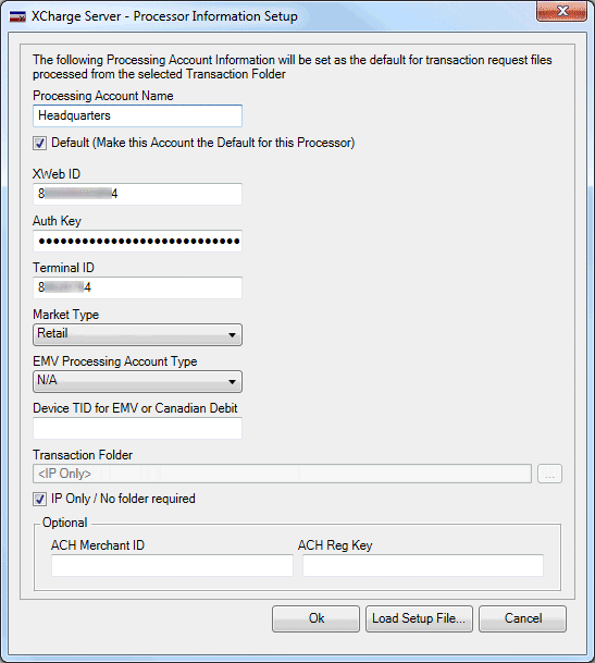 - Add Processor Accounts Information for each clinic in Open Dental that will be using XCharge. For clarity, we recommend using the Open Dental clinic descriptions for the Processing Account Names.