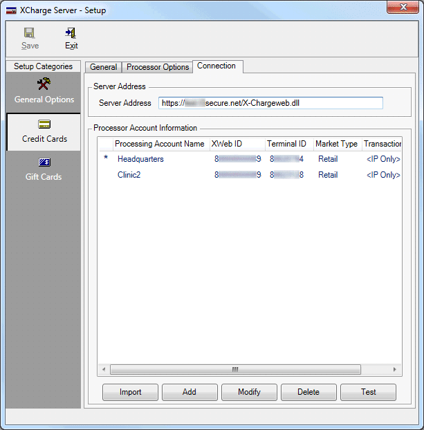 Once X-Charge is installed, add merchant accounts for each clinic.