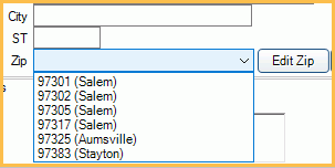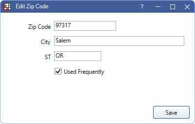 - If the zip code does not exist in the main list, opens the Edit Zip Code window. Allows the user to quickly add the zip code to the main list.