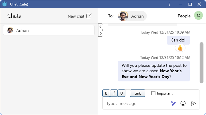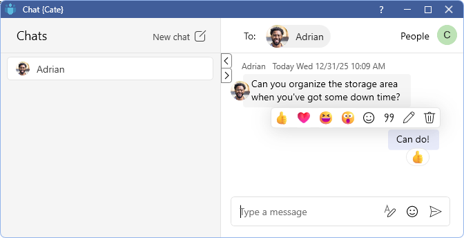 Pop-up notifications make sure you never miss a message, even when Chat is minimized.