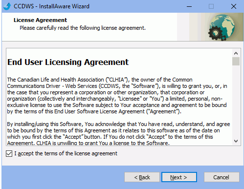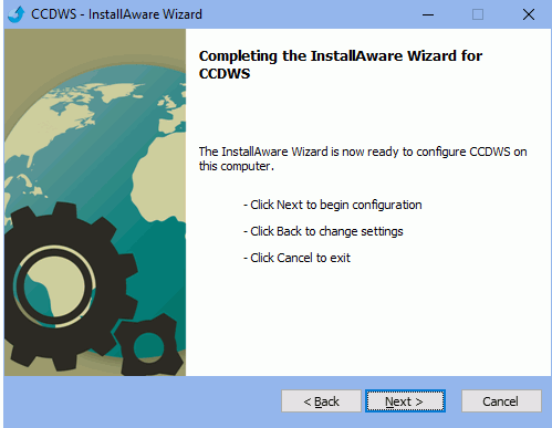 If the prompt in Step 12 does not appear, there may be an issue with the credentials. Re-run the installer as administrator, and when prompted for credentials (step 9), leave them blank and click Next. When the installation is complete, find CCDWS in Services and go to Properties. Re-enter the credentials under This Account in the Log On tab.