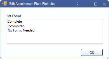 Click OK to save. The text or selected response is now displayed on the appointment.