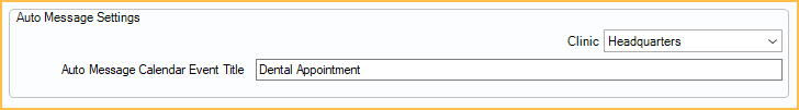 Use Practice Default: Only available when using clinics and a clinic other than Headquarters is selected. Check to use the Headquarters Auto Message Calendar Event Title for this clinic.