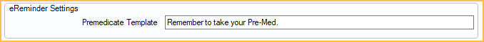 Premedicate Template: The sentence sent for eReminders that include the [Premed] tag. The [Premed] tag only sends for patients marked as Premedicate in the Medical area.