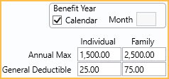 Annual Max: The maximum annual amount insurance pays in benefits per individual or family. If left blank, Insurance Remaining Calculations cannot be done.