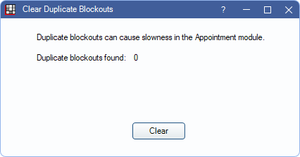 Clear duplicate blockouts to improve slowness in the Appointments Module.