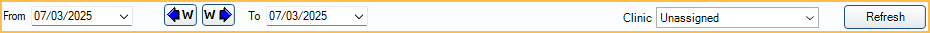 - From / To: Change the date range to filter results. Use the W buttons to quickly switch weeks.