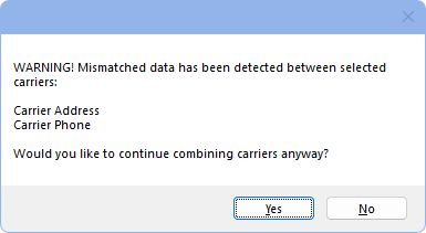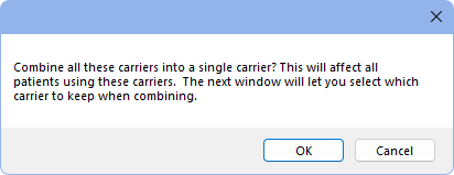 Caution: Combining carriers is irreversible. When carriers are combined, only one carrier's information is retained. Any insurance plans with the other carriers are automatically assigned the new carrier.