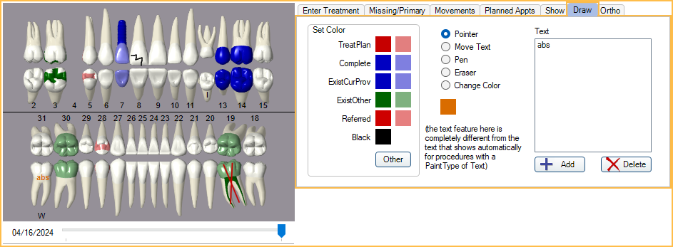 - Move Text: Use to move custom text around on the tooth chart. Only available with DirectX 11.