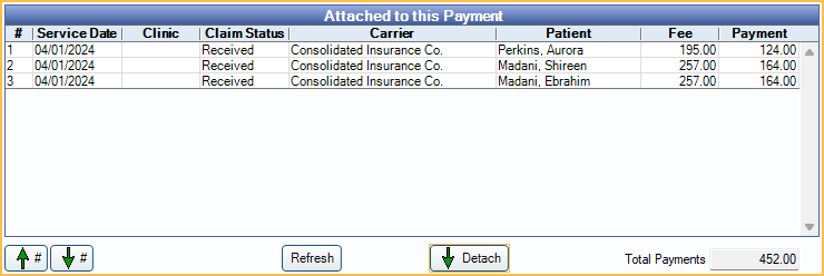 This occurs when other claims have been received, but not finalized. All received claims not finalized are automatically included in the total amount calculation, and users see the claims listed in the Attached to this Payment grid.