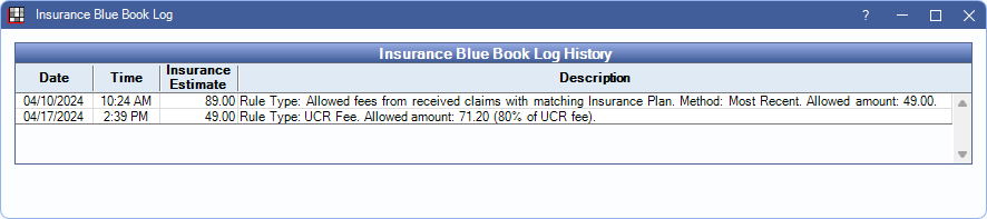 The history of the fee is shown. As allowed amounts are entered, or manual fees change, they are logged here.