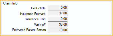 Paid By Other Ins: Adds up all amounts paid by insurance plans that are lower in order. For example, it never contains an amount if this is primary insurance. Enable Auto update secondary claim estimates when primary is received in Preferences to update this amount automatically.