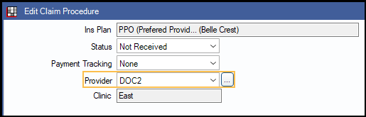 Warning: In most scenarios, the provider on the Claim Procedures ( claimprocs ) matches the provider on the associated procedure so that production and income match. In fact, when a procedure's provider is changed, by default the matching claim procedure's provider also changes. It is possible to have mismatched providers, but there are issues users need to be aware of and additional work involved.