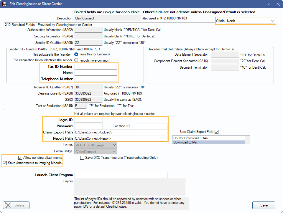 If using clinics, set different clearinghouse settings for each clinic.
