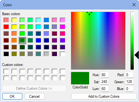 If the right portion of the Color window doesn't initially show, click Define Custom Colors.