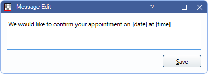 Use Confirmation Setup to define the default messages (text messages, emails, and postcards) for confirmations sent from the Confirmation List and set the default appointment confirmation status to apply when a confirmation is emailed or texted.