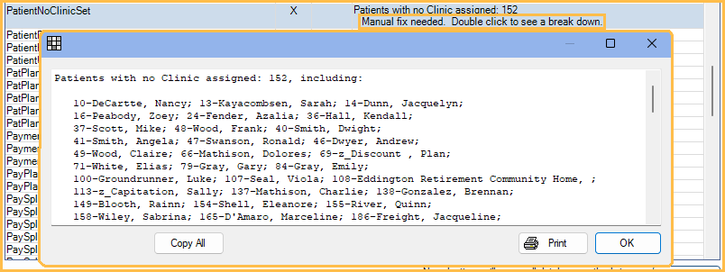 Some errors detected during a check must be fixed manually. If the results log indicates a manual fix is needed, double-click on the row to open more details.