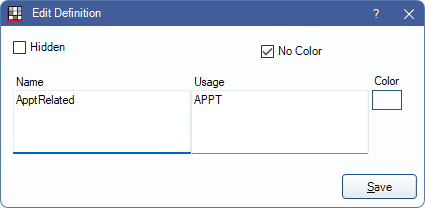 - APPT: Enter APPT to set this as the default type when Comm is clicked on the Edit Appointment window. Commlogs with this type are highlighted yellow in the Communications Log - Appointment Scheduling grid.