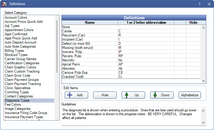 In the Main Menu, click Setup, Definitions, Diagnosis Types.
