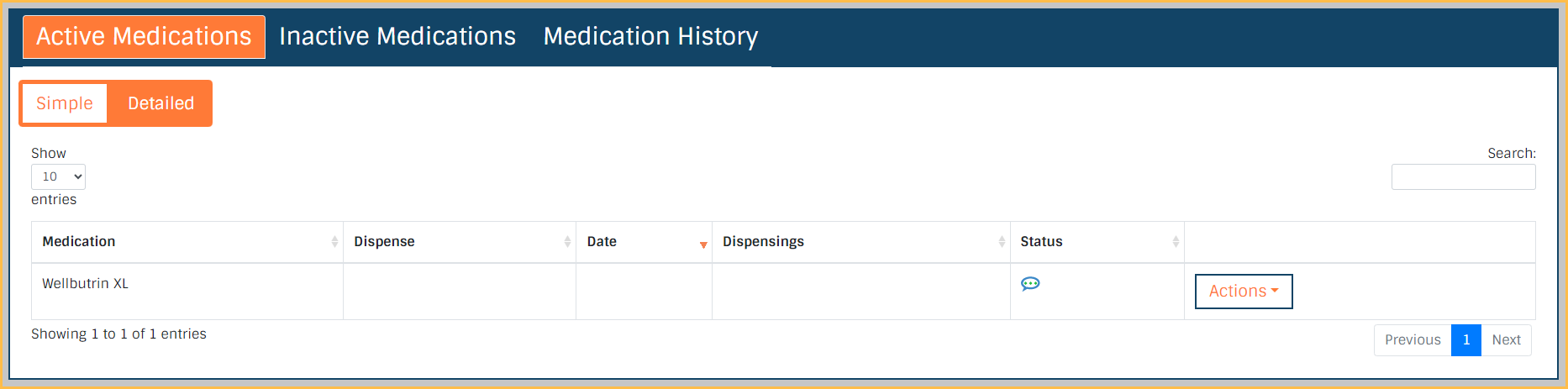 Patient reported (or self reported) medications appear in Medications in Open Dental and in the Patient's Active Medications area as a comment icon in DoseSpot.