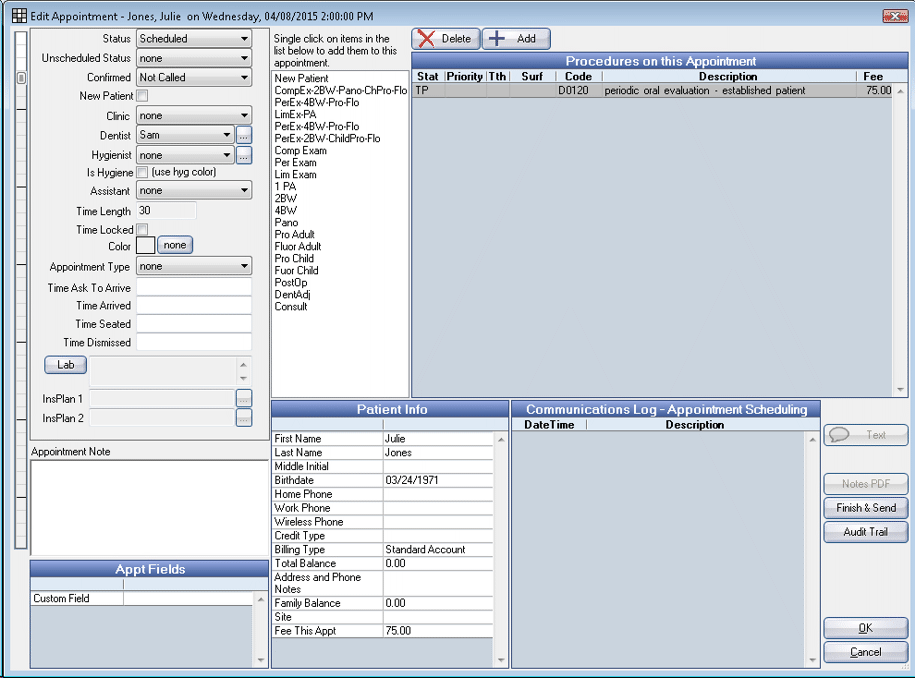 - If you send the appointment and then realize the attached procedures are incorrect, you must manually fix the procedures in both Open Dental and in eCW.