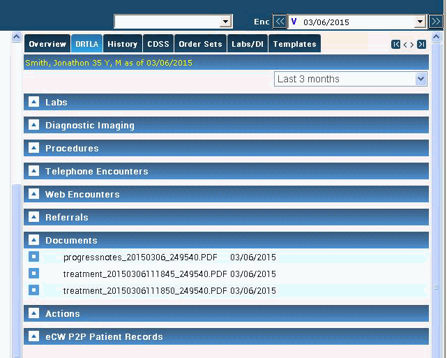 - PDFs of progress notes and any saved treatment plans show In the medical panel, under the DRTLA tab, Documents.