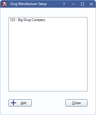 In the Main Menu, click Setup, Chart, EHR, then click Drug Manufacturer.