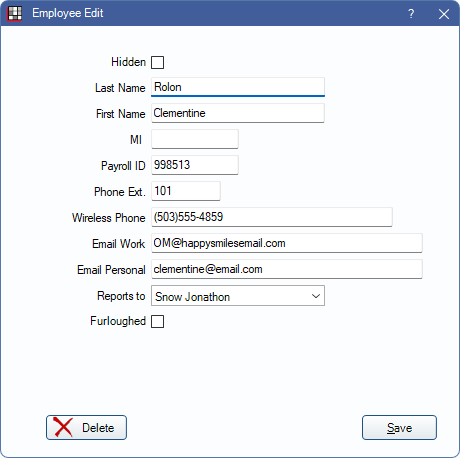 - Reports To: Select another employee that the currently selected employee reports to (e.g., office manager, lead, etc.).