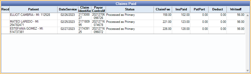 - Recd: Received status. X indicates the claim payment has been processed and claim marked received.