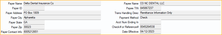 The top half of the window displays information about the payer (carrier) and payee (office/provider).