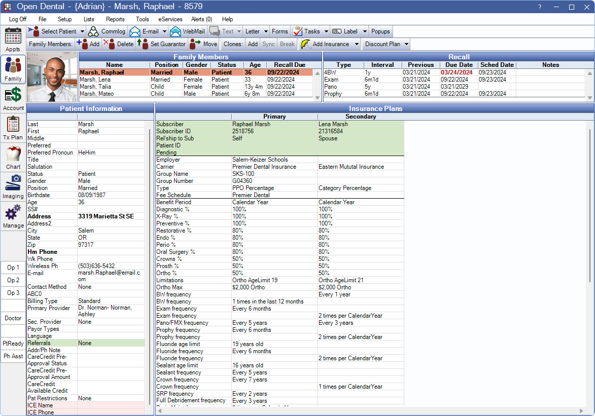 The Family Module is where basic patient and insurance information is entered and organized.