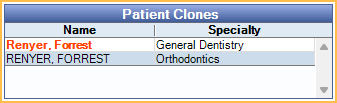 This grid only shows when the selected patient has a Patient Clone. It lists the original patient and all associated clones.