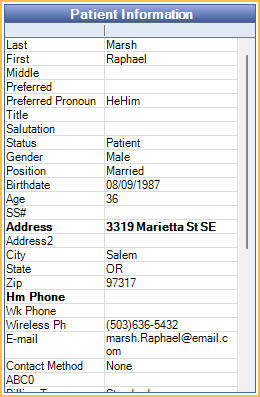 A summary of patient information. Double-click in the area to edit or enter information on the Edit Patient Information Window.