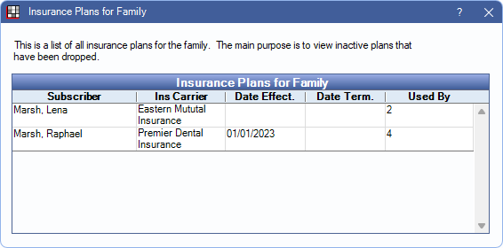 To view all plans associated with a family, click the Add Insurance dropdown menu, then click Plans for Family.