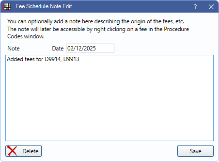 Click Add to create a new Fee Schedule Note or double-click an existing note to edit.