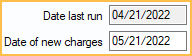 Date Last Run: Date the Billing/Finances charge tool was last run.