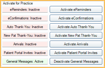 - To enable General Messages, click Activate General Messages. The General Messages row displays in green with a status of Active.