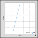 Below is a graph representing no enhancement. The x axis represents the color (gray level) of each pixel input from the raw image, and the y axis represents the resulting output in the enhanced image. For any value that is input, the exact same value is output. The red shows how an input of .5 results in an output of .5. This graph is the basis against which all enhancements are compared.