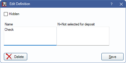 N=Not selected for deposit: Enter N to exclude this type from deposit slips or leave blank to include this type.