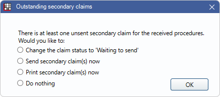 If all selected procedures are marked NoBill for Secondary, a warning is instead shown that no claim is created.