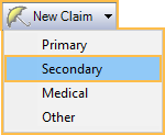 To manually create a secondary claim, highlight the procedures, click the New Claim dropdown and select Secondary. This is necessary if the secondary plan was added after creating the primary claim.