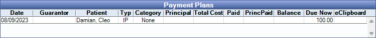 Installment plans allow offices to bill patients an agreed monthly amount. Additional charges posted after the Installment Plan creation date do not affect the monthly due balance, nor do missed payments.