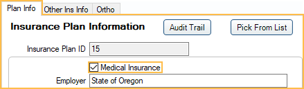 Patients can have unlimited insurance plans. To designate an insurance plan as medical, select the following on the Insurance Plan.