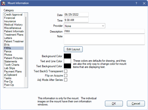 The following fields are informational only. These boxes can be checked or unchecked, but will not affect the images or mount:
