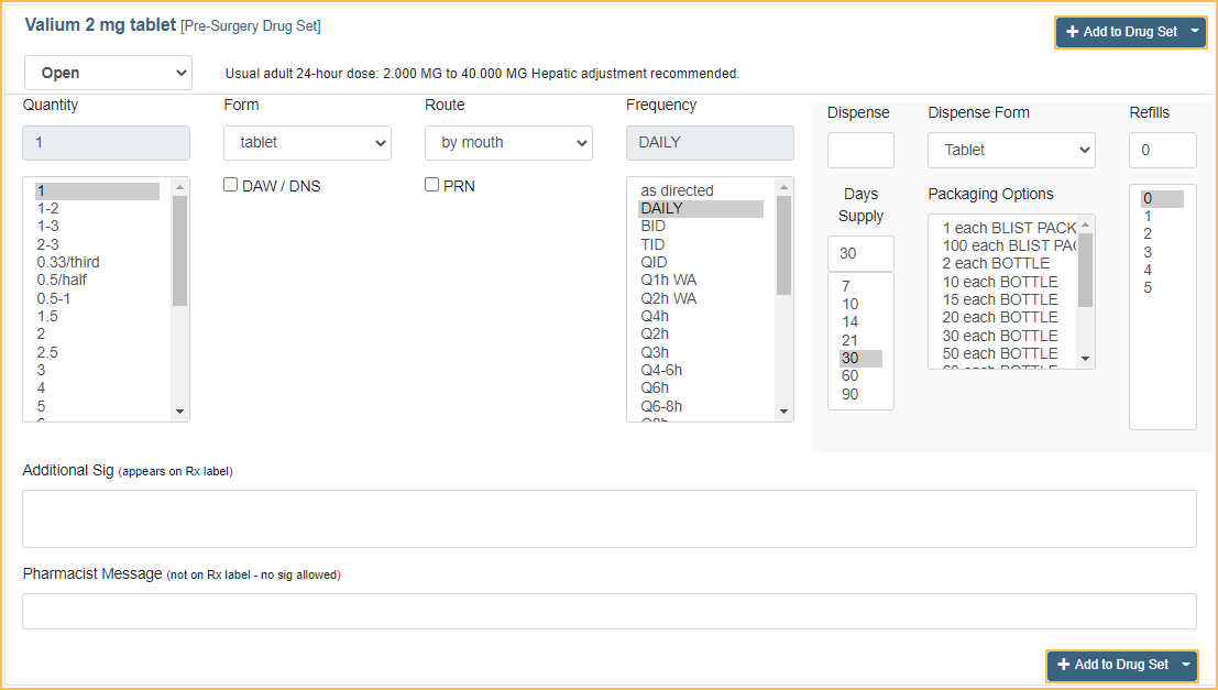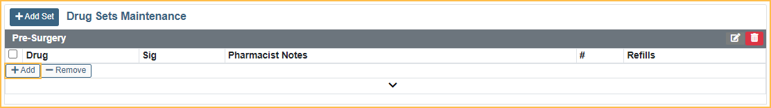 - Click Add under the name of the Drug Set to add a drug.